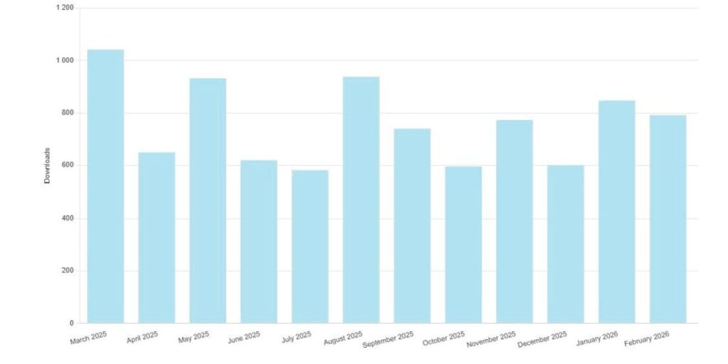 Genomsnitt antal nedladdningar varje månad: 800